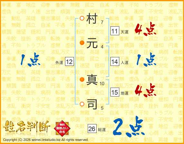 村(7画)元(4画) 真(10画)司(5画)