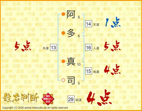 阿多真司さんの総運は29画の4点!