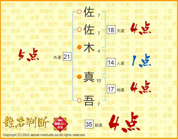 佐(7画)佐(7画)木(4画) 真(10画)吾(7画)