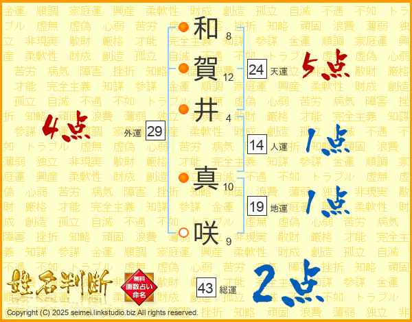 和(8画)賀(12画)井(4画) 真(10画)咲(9画)