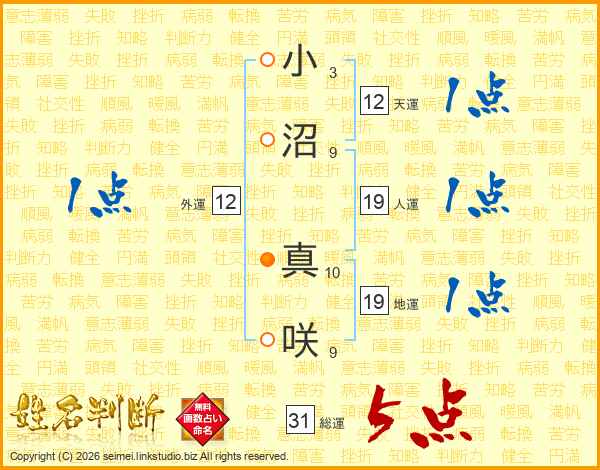 小沼真咲さんの総運は31画の5点!