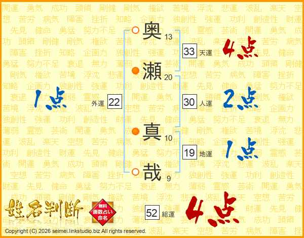 奥瀬真哉さんの総運は52画の4点!
