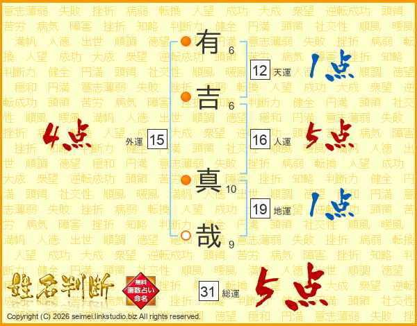 有吉真哉さんの総運は31画の5点!