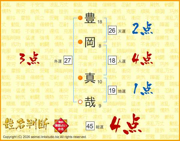 豊岡真哉さんの総運は45画の4点!