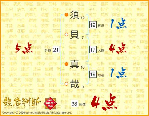 須貝真哉さんの総運は38画の4点!
