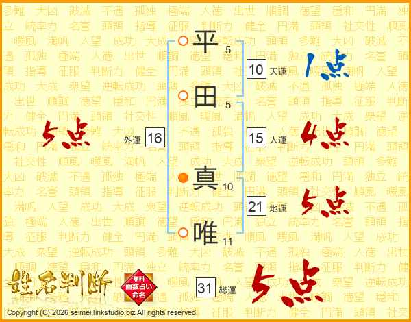 平田真唯さんの総運は31画の5点!
