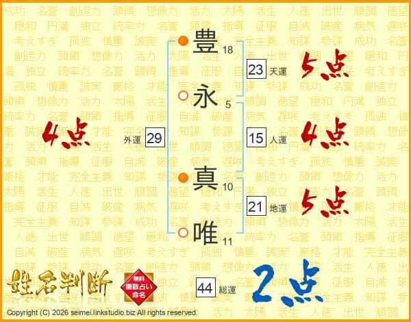 豊(18画)永(5画) 真(10画)唯(11画)