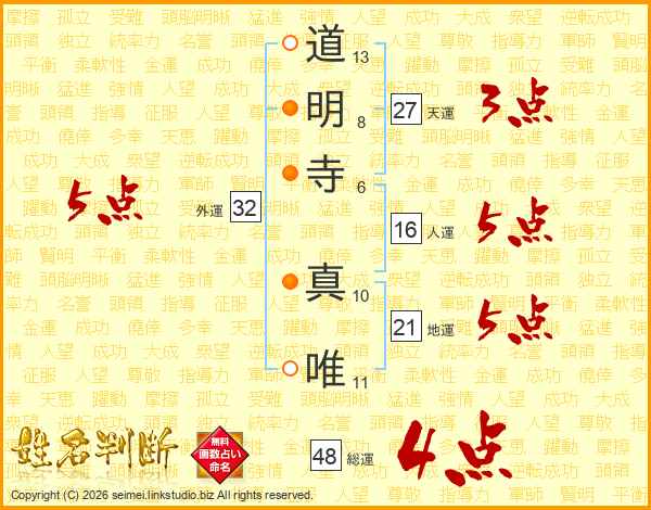 道明寺真唯さんの外運は32画の5点!