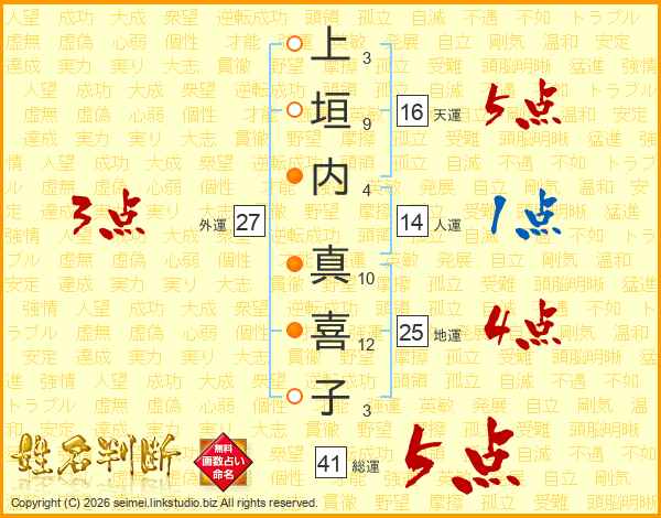 上垣内真喜子さんの総運は41画の5点!
