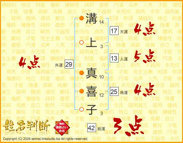 溝上真喜子さんの天運は17画の4点!