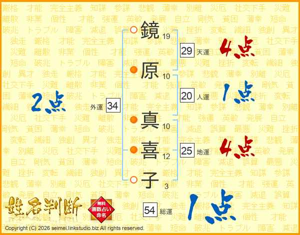 鏡原真喜子さんの総運は54画の1点!