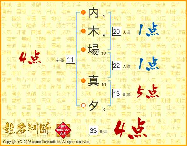 内(4画)木(4画)場(12画) 真(10画)夕(3画)