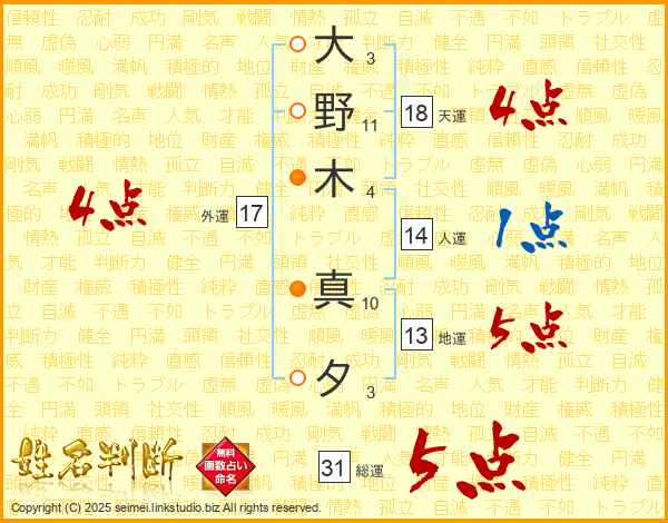 大野木真夕さんの天運は18画の4点!