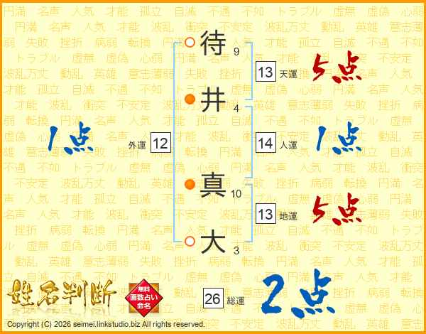 待井真大さんの天運は13画の5点!