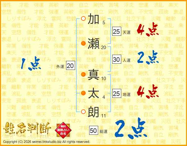 加瀬真太朗さんの天運は25画の4点!