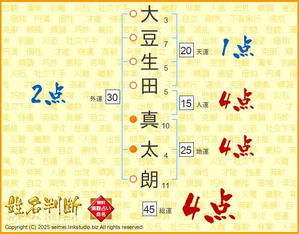 大豆生田真太朗さんの地運は25画の4点!
