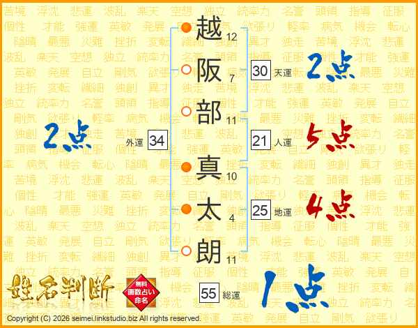 越阪部真太朗さんの総運は55画の1点!