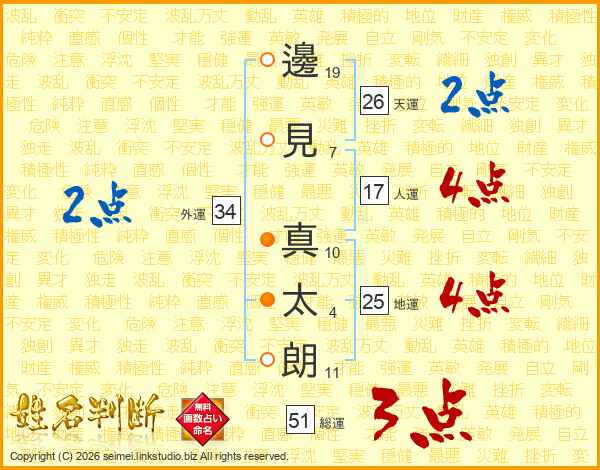 邊見真太朗さんの地運は25画の4点!