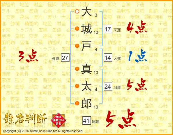 大城戸真太郎さんの総運は41画の5点!
