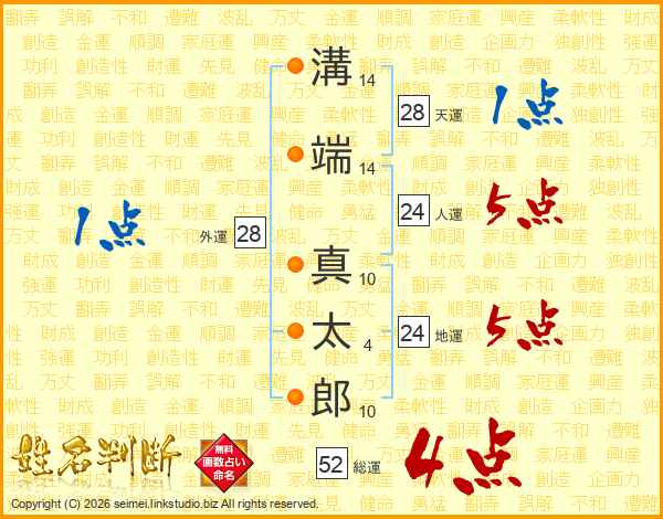 溝端真太郎さんの総運は52画の4点!