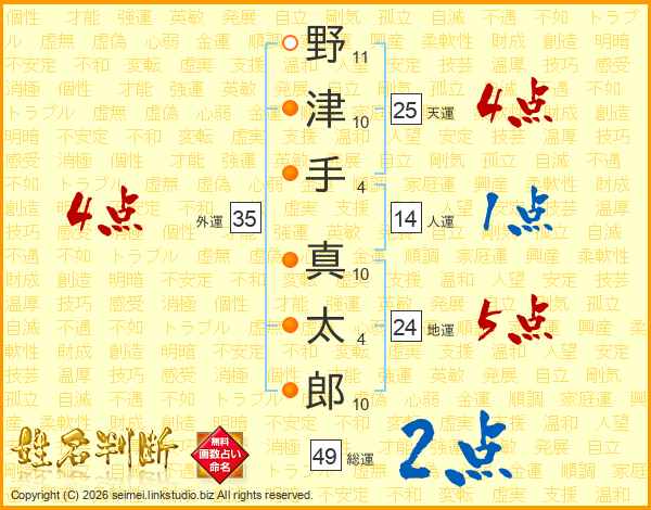 野津手真太郎さんの総運は49画の2点!