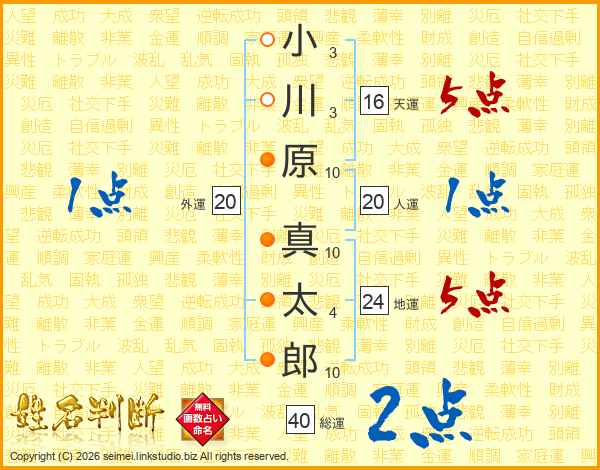 小川原真太郎さんの総運は40画の2点!