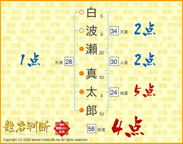 白波瀬真太郎さんの総運は58画の4点!