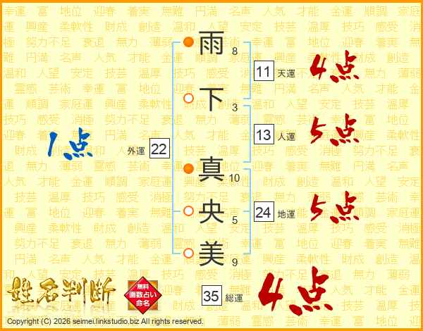 雨下真央美さんの総運は35画の4点!