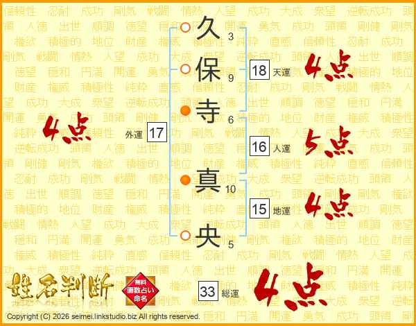 久保寺真央さんの総運は33画の4点!