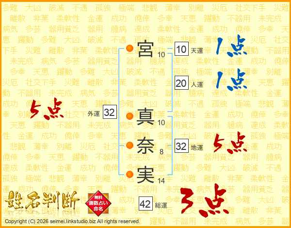 宮真奈実さんの外運は32画の5点!