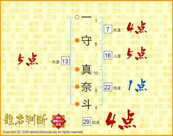 一守真奈斗さんの総運は29画の4点!