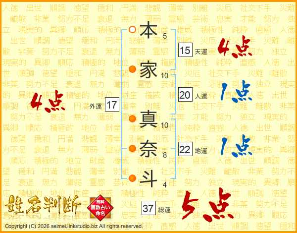 本家真奈斗さんの総運は37画の5点!