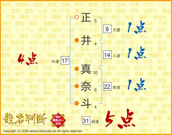 正井真奈斗さんの総運は31画の5点!