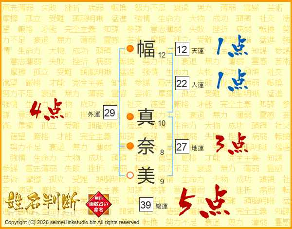 幅真奈美さんの総運は39画の5点!