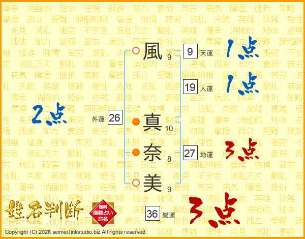 風真奈美さんの外運は26画の2点!