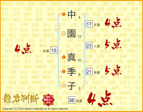 中園真季子さんの総運は38画の4点!