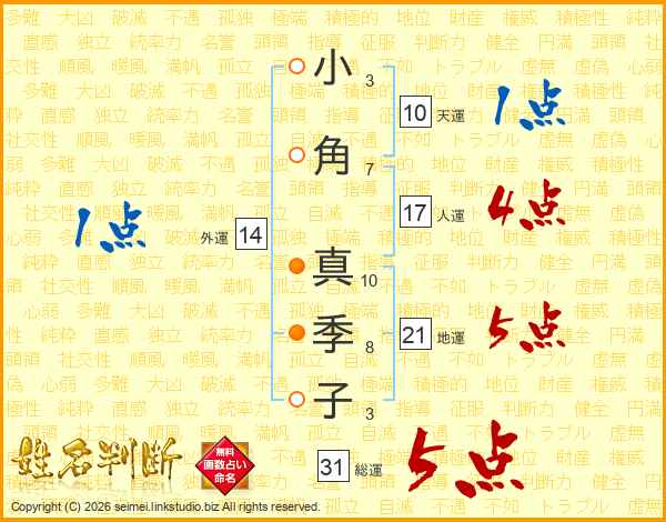 小角真季子さんの外運は14画の1点!