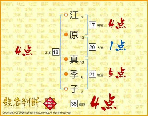 江原真季子さんの総運は38画の4点!
