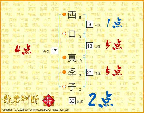 西口真季子さんの総運は30画の2点!