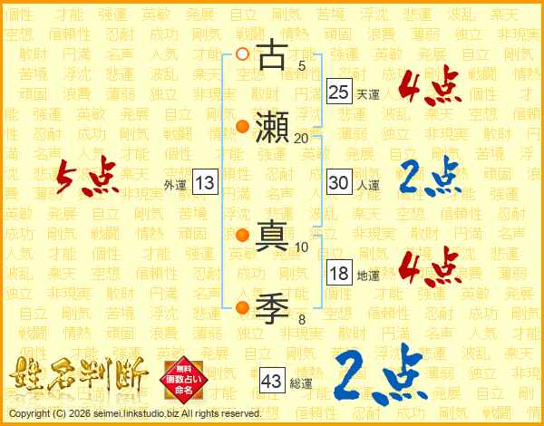 古瀬真季さんの天運は25画の4点!
