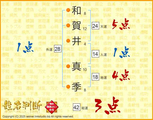 和(8画)賀(12画)井(4画) 真(10画)季(8画)