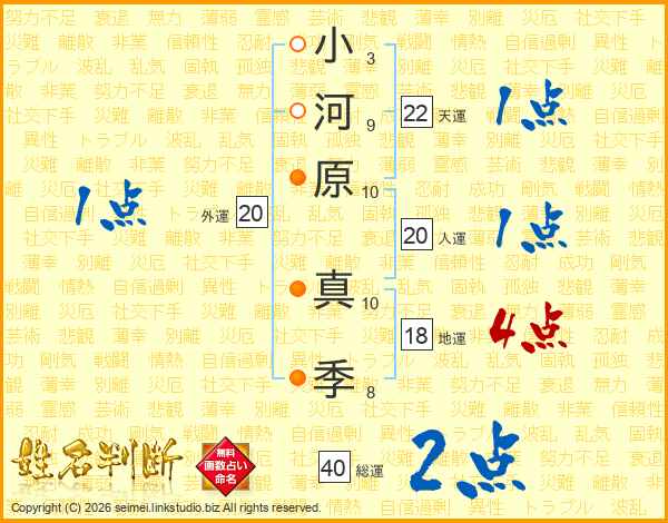 小河原真季さんの天運は22画の1点!