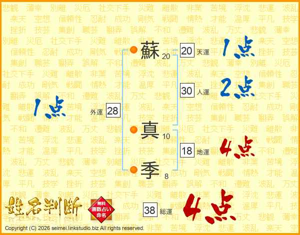 蘇(20画) 真(10画)季(8画)