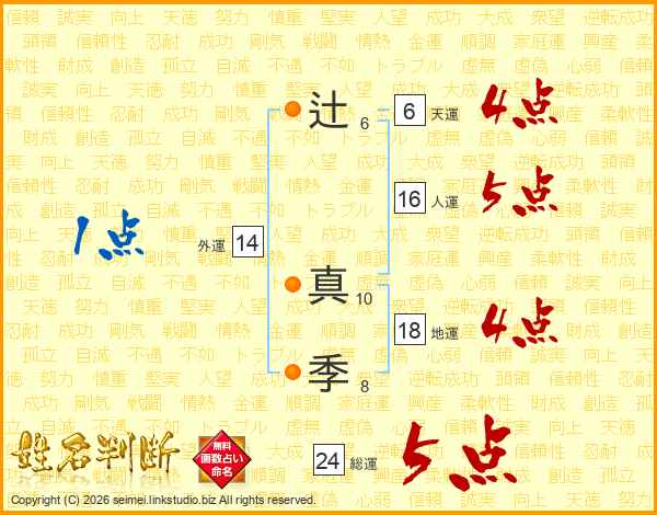 家系が持つ宿命的な運勢を表します。祖先から受け継いだ苗字ですので自分の力が及びません。家柄を象徴します。苗字の合計画数。