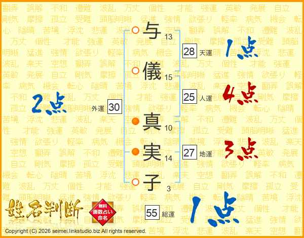 与儀真実子さんの総運は55画の1点!