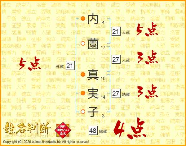 内薗真実子さんの外運は21画の5点!