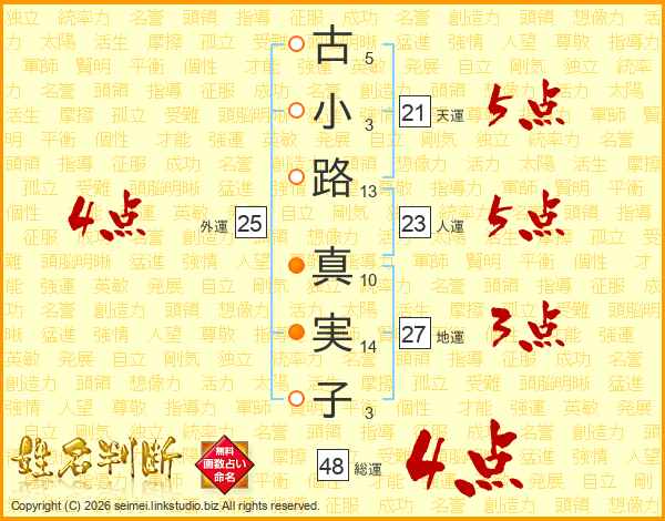 古(5画)小(3画)路(13画) 真(10画)実(14画)子(3画)