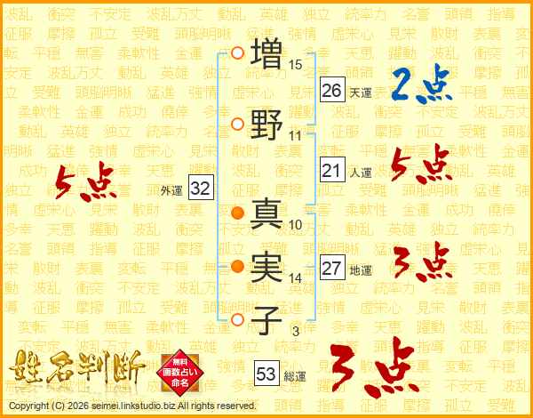増野真実子さんの天運は26画の2点!