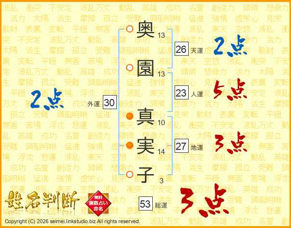 奥園真実子さんの総運は53画の3点!