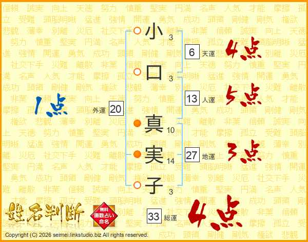 小口真実子さんの総運は33画の4点!
